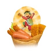 「キャラクレ!meetsおそ松さん~Cawaii松~」では、原宿ならではのファッションに身を包んだ6つ子の描き下ろしイラストが登場。メニューにはソーセージとスナック菓子でエビフライに見立てた「おそ松キャラクレ!」、キャラメルとバナナ、チョコが入った「カラ松キャラクレ!」、ラムネアイスやピンクのホイップでカラフルな色合いの「トド松キャラクレ!」がラインナップされている。また各クレープには、描き下ろしイラストをプリントしたせんべいやビスケットをトッピング。