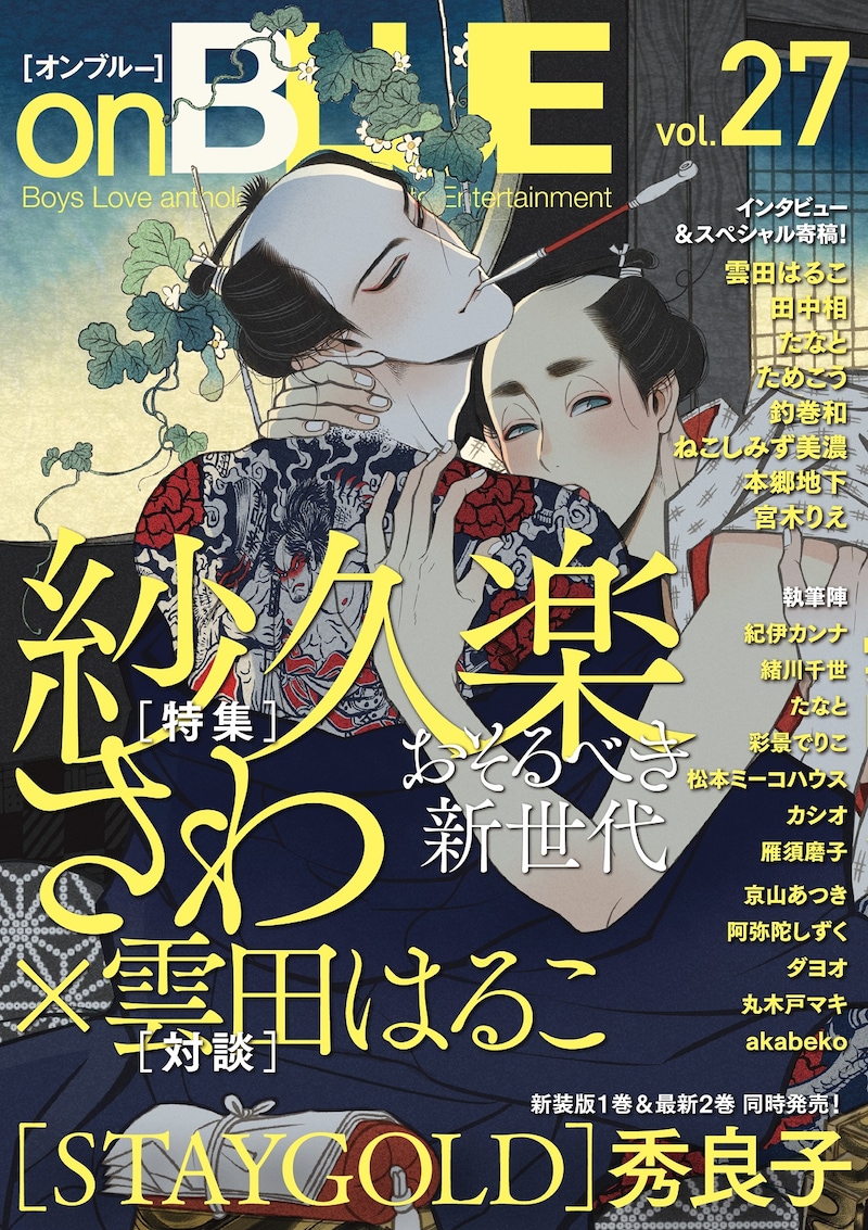 伊達男と陰間あがりの江戸BL「百と卍」を連載中で、同じく本日刊行された同作の単行本は発売前から重版が決定していることで注目を集めている紗久楽。特集ではデビューから約7年間、一貫して江戸を舞台にストーリーを描いてきた紗久楽の“江戸デビュー”が本人から語られるほか、「百と卍」のラフやコマ解説が収録される。また「趣味嗜好が似ている」という紗久楽と