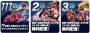 キャンペーン参加者が777名に達した場合は「北斗の拳」化粧まわしデザインのタオルを抽選で77名にプレゼント。2000人達成で映画「真救世主伝説 北斗の拳 ラオウ伝 殉愛の章」、3000人達成で映画「真救世主伝説 北斗の拳 ラオウ伝 激闘の章」が77時間「マンガほっと」で無料配信される。締め切りはサービス開始前日の18時を予定。詳細は「マンガほっと」公式サイトで確認を。