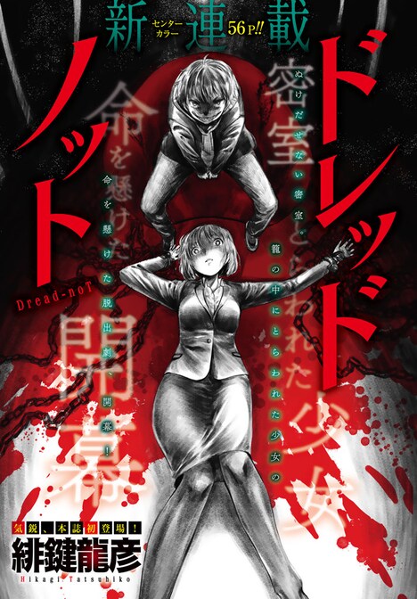 また、good!アフタヌーン初登場となる緋鍵の「ドレッドノット」は、就職活動中の主人公・伊坂詩織を描く物語。なかなか採用が決まらない詩織は、ある日駅前で声をかけてきた男に誘われて突発的にアルバイトをすることに。バイト先への移動中、急な眠気に襲われた詩織が目を覚ますと、そこは見覚えのない不気味な密室だった。脱出を図る詩織の運命やいかに。