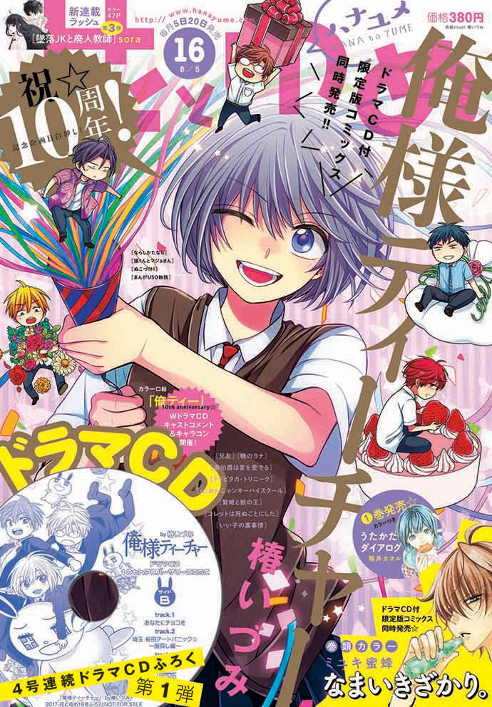 同じく本日、「俺様ティーチャー」の単行本24巻が刊行。通常版に加えて、ドラマCD「10thアニバーサリーDISC サイドA」付きの初回限定版も登場した。「俺様ティーチャー」の限定版が発売されたのは、今回が初めて。限定版にはドラマCDとともに、描き下ろしマンガが収録された「ドラマCDミニ副読本」も同梱された。アニメイト、三洋堂書店、文教堂・アニメガほか全国の書店では、購入者にイラストカードをプレゼント。通常版と初回限定版で異なる絵柄が用意されている。
