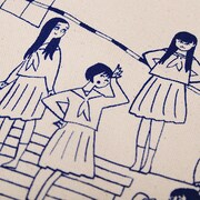 これは本日8月8日にアイドルネッサンス初のオリジナル楽曲を収めたミニアルバム「前髪がゆれる」がリリースされたことを記念したもの。西村は彼女たちのノスタルジックな世界観を表現すべく、イラストの描き下ろしをオファーされた。登場したのはTシャツ、トートバッグ、アートキャンバス、ソロTシャツとステッカーセットの4種。ミニアルバムに収録される「交感ノート」のMVや、「Blue Love Letter」の歌詞からインスピレーションを受けたというデザインが落とし込まれた。