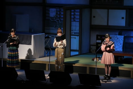 ステージ上には、川本家の居間と台所を再現した大きなセットが。居間には掘りごたつ、台所には冷蔵庫なども用意され、声優たちもあまりの本格ぶりに驚く。茅野があかりおねいちゃんらしく、妹たちにお茶やオレンジジュースなどを注ぎ、アニメ第1シリーズの振り返りがスタートした。まずそれぞれが演じたキャラクターの印象的なシーンを紹介。茅野はあかりが零と出会い、嘔吐させるために零の口内に指を突っ込んだエピソードである第2話「Chapter.4 橋の向こう」を選択し、「演じている私自身も、どういう気持ちであかりさんは零くんの口の中に指をえいって入れたのかなって。あかりさんの聖母のような感じが素敵だなあと思って」と語った。