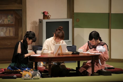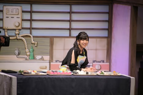そして花澤と久野が、作中に登場する“ニャー将棋”で対局するコーナーに突入。花澤が何度か勝機を掴むも、久野がかわいらしくパチパチとまばたきしたり、観客が久野にアドバイスしたりと攻めきれず、結果は久野の大逆転に終わった。続いて茅野がオリジナルの串団子を作る「ライオンクッキング」のコーナーへ。スタンダードな団子から変わり種のモッツァレラチーズ、トマトなど何種類もの具材やトッピングの材料が用意されるなか、茅野はあかり同様、ほがらかかつマイペースに料理を進めていく。久野には団子に生クリームをかけ、バラやフルーツでトッピングした見た目もカラフルで華やかな串団子を作成したが、花澤にはうずらの卵、モッツァレラチーズ、マシュマロ、ベビーカステラにマヨネーズやみたらしをかけ、海苔を振りまいた串団子、自分にはミニトマトとチーズを串に刺した串団子を作り上げた。花澤は串団子を見て絶句。会場を爆笑の渦に巻き込んだ。