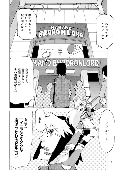 同作はコミックハイ、月刊アクション(ともに双葉社)で連載された「超可動ガール1/6」の新シリーズ。オタク青年の春人と、突然自立して動き出した美少女フィギュア・ノーナらの日常を描くラブコメディだ。「超可動ガールズ」第1話では、春人とノーナが中野にある「マニアでオタクな店ばっかりのビル」を訪れる。