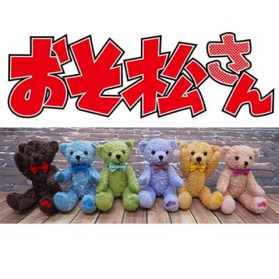 劇中に登場する6つ子をモチーフに制作された「くま松さん」。おそ松、カラ松、チョロ松、一松、十四松、トド松をイメージした全6種類がラインナップされている。テディベアを手にした6つ子の描き下ろしイラストを使ったブロマイドと缶バッジも付属し、価格は1体につき4320円。ムービックにて10月29日まで注文を受け付けている。