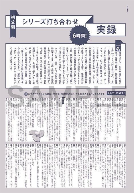 1年半以上の取材を経て完成した同書。自身の作品への思いや裏話、マンガについて語る3万字インタビューや、1986年のデビューから描いてきたエピソードの中で“とっておきの1話”を選び解説する「30年分の1話」などが収められた。さらに6時間に及ぶ編集者との打ち合わせの様子を記録した「『名探偵コナン』ができるまで」では、ファンの間で一大ジャンルとなっている“あむぬい”“あかぬい”こと安室透と赤井秀一のぬいぐるみについても言及。加えて青山が影響を受けてきた作品、好きなコンテンツを紹介するエンタメ作品ガイドも登場し、仕事場の写真や愛用している文具、「名探偵コナン」のネームから仕上げまでも公開され、ファンならずとも読み応えのある1冊に仕上げられた。