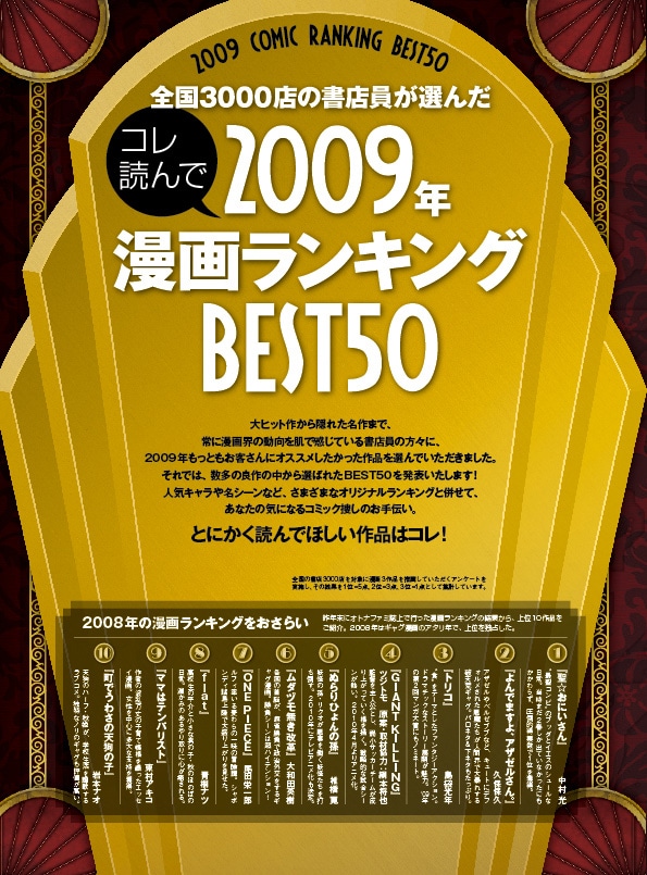 本日12月21日に発売されたオトナファミ2010 February(エンターブレイン)では、「全国3000店の書店員が選んだ 2009年絶対に読んでほしい漫画 BEST50」と題したマンガ特集が組まれている。