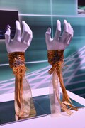 2.5次元舞台の始まりから現在に至るまでの歩みを、マーベラスがこれまでに手がけてきた11作品とともに紹介する本展。ミュージカル「テニスの王子様」や舞台「弱虫ペダル」ほか、人気タイトルの衣装や小道具などが展示されている。入場するとまずは各作品の紹介映像に出迎えられ、次に待ち受けていたのはミュージカル「テニスの王子様」のコーナー。青春学園、立海大附属、六角のユニフォームと、カーテンコールでキャストが腕に付けて使用する「キラキラミトン」がお目見えした。