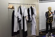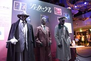 さらなるエリアでは、ミュージカル「薄桜鬼」、舞台「K」、超歌劇「幕末Rock」、舞台「東京喰種」、ミュージカル「青春-AOHARU-鉄道」、舞台「ジョーカー・ゲーム」、「B-PROJECT on STAGE『OVER the WAVE!』」の衣装が一挙にずらり。舞台「刀剣乱舞」のコーナーでは、今年6月から7月にかけて「舞台『刀剣乱舞』義伝 暁の独眼竜」で使用された、高さ2.56m、横幅10.1mにもなる大きな本丸のセットの一部が会場に出現。劇中の場面を再現するように、屋根の上には小夜左文字、歌仙兼定の衣装が並び、来場者はその前で記念撮影を楽しむことができる。また上演時に観客を驚かせた、鶴丸国永が黒甲冑に取り込まれた際の黒い衣装や、太鼓鐘貞宗・大倶利伽羅らの内番衣装など、ファンにはたまらない貴重な展示が満載だ。