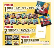 なおコラボカフェではフード・ドリンクを1品注文するごとに、特典コースターをランダムで1枚プレゼント。さらに1000円購入するごとに1つスタンプが押され、5つ集めた人には特典ポスターが進呈される。そのほか来店者全員に、ランチとディナーで異なるイラストの紙製ランチョンマットが1枚配布される。