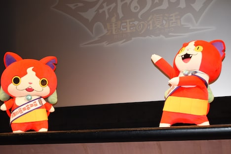 「妖怪ウォッチ」シリーズの本編から30年後を舞台とした同作。妖怪ウイルス“鬼まろ”が人の悪意に感染して無限に増殖する中、3人の少年少女が人類滅亡の危機を救うために立ち上がる様子が描かれていく。イベントでは、たくさんの子供たちが今か今かとジバニャンの登場を待ち望む中、「俺様がジバニャンだ! 今日は俺様の映画にたくさん集まってくれてありがとニャン」と30年後の姿だというジバニャン(ライトサイド)がステージに上がる。続けて現在のジバニャンが乱入すると、客席からは大歓声が巻き起こった。