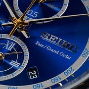 時計メーカーのセイコーとFGOが初コラボした時計「Fate/Grand Order オリジナルサーヴァントウォッチ<セイバー/アルトリア・ペンドラゴンモデル>」は、キャラクターカラーであるブルーを基調に、甲冑のシルバー、王冠や髪色のゴールドでアルトリアの個性が表現された。また時計の針は、アルトリアの宝具「約束された勝利の剣(エクスカリバー)」をイメージ。さらに銀色の背面には、人理継続保障機関「カルデア」のマークとセイコーのロゴに加え、シリアルナンバーが刻印される。