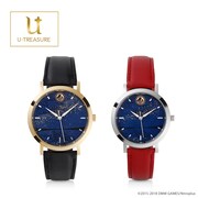 「蒔絵 -刻-」は、漆の上から金、銀、錫などの金属粉を蒔くことで、表面に定着させる漆工芸技法「蒔絵」をデザインに取り入れた腕時計。藍と墨色で描かれた漆の下地と、蒔かれた金粉が文字盤を彩る上品なアイテムだ。ベルトは朱、藍、墨の3色から選べるほか、12時の位置のインデックスに、全62振りの中から希望する刀剣男士の紋を入れることが可能だ。なお大きめサイズのU-TREASUREのオンラインショップ限定版も用意された。