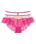 このたび登場した「グラマリッチブラ」では、繊細で高級感あるアイラッシュレースをふんだんに使用し、峰不二子が持つ“かしこくSEXY”なイメージを表現。3/4カップタイプと1/2カップタイプのブラジャー、ショーツ、フレアーショーツ、ソングショーツ、キャミソールが用意された。カラーはピンク、ブラック、グレー、メロン、イエローの5色展開。