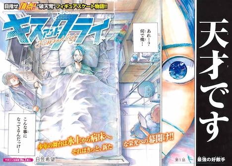そのほか今号にて、新鋭・日笠希望の新連載「キスアンドクライ」が始動した。本作は、事故で1年間眠っていた元天才フィギュアスケーター・橘龍希を描く物語。フィギュアスケーターとして活躍していた自分の記憶を失ってしまった龍希は、目を覚ましつらい現実を知ることになるが……。2017年5月に同誌で行われた、読者投票で読み切りが連載になる企画に登場した本作。読者アンケート1位獲得とSNSなどの反響を受け、連載の運びとなった。
