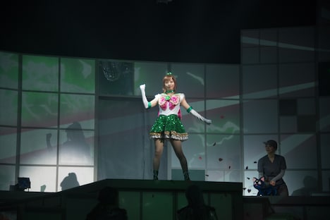 さらに舞台後半は、記憶を取り戻し、自分たちの使命を知ったうさぎたちが、ダーク・キングダムに囚われたタキシード仮面を助け出すため動き出す。また舞台いっぱいに映し出された映像には、クイーン・セレニティ役で白石麻衣が出演し、セーラー5戦士たちを導いていく。そして本編後にはスペシャルライブショーも実施。「ムーンライト伝説」や「ラ・ソウルジャー」といった、「セーラームーン」関連のナンバーが披露された。