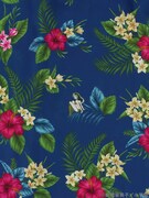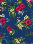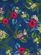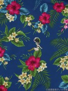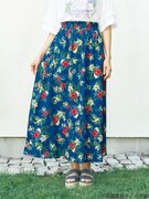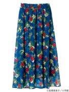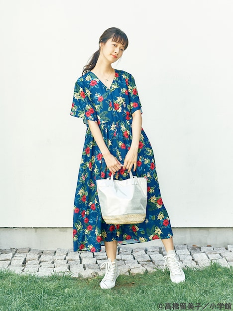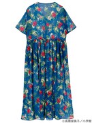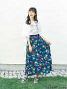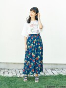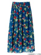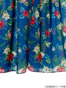 ラインナップされたのは、ワンピース、スカート、Tシャツ、ネックレス、トートバッグ、ポーチの6アイテム。ワンピースとスカートは柔らかいジョーゼット素材で、ブルーをベースにハイビスカスがちりばめられたアロハ柄に、ラムやテンのイラストがさりげなくプリントされている。