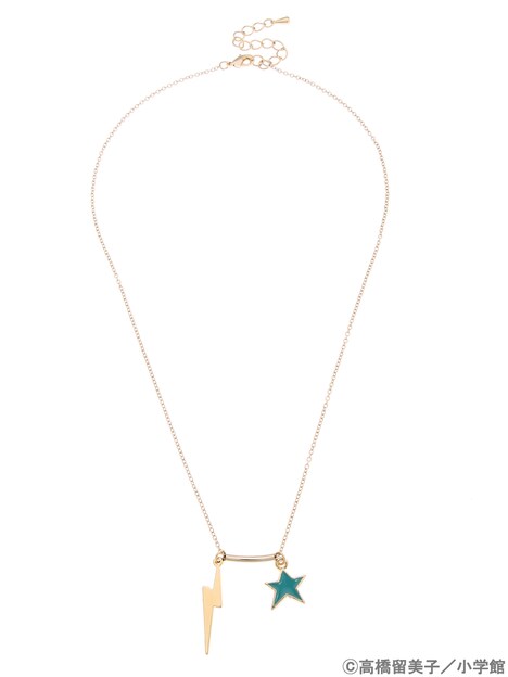 ラムをイメージしたゴールドのネックレスは、稲妻をかたどったチャームと、ラムの髪色を思わせる緑色の星のチャームが付いた、普段使いしやすいデザイン。なお、STRIPE CLUBにてコラボ商品を8000円購入するごとに、高橋留美子のイラストを使用した「うる星やつら」のイラストカードが1枚プレゼントされる。