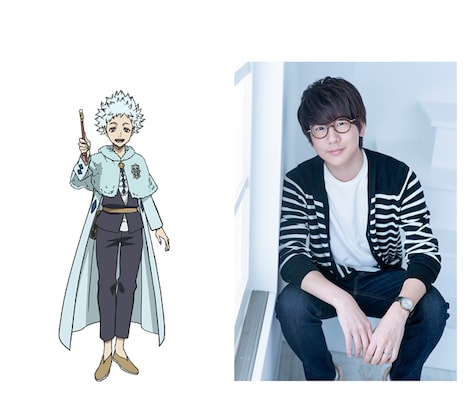 杉田は「顔に同じ模様を塗る位の勢いで彼を演じようと思います」とコメント。一方で花江は「彼の掴み所の無いふわふわした雰囲気と団長としての強さどちらもしっかりと表現できればと思います」と語った。2人は明日6月19日に放送される第37話「魔力無き者」より登場する。