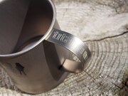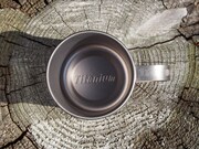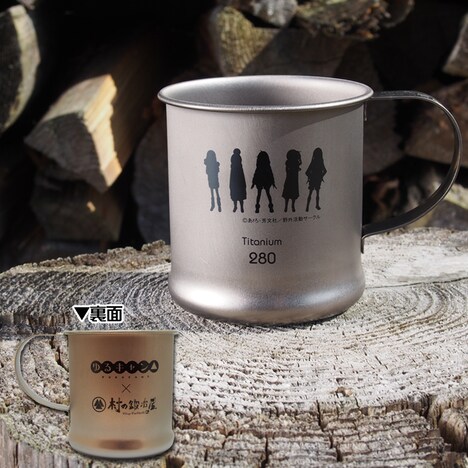 アウトドアに最適なチタン製のマグカップと、サイドテーブルの取り外し可能なステンレスカバーにも、同じくダブルネームロゴとキャラクターのシルエットをプリント。サイドテーブルには「ゆるキャン△」のロゴがプリントされた専用のトートバッグが付属する。