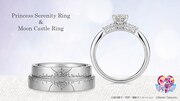 コラボジュエリー第2弾としてラインナップされたブライダルリングは「Princess Serenity Ring」と「Moon Castle Ring」の2種類。「Princess Serenity Ring」は、プリンセス・セレニティが身に纏うドレスをモチーフにしたエンゲージリングで、「Moon Castle Ring」は、シルバー・ミレニアムに建つ宮殿ムーンキャッスルのシルエットがデザインされたマリッジリングだ。リングの内側には、日付やイニシャルなどを無料で刻印できる。なおセーラーウラヌスとセーラーネプチューンをモチーフにしたネックレスとリングも販売される。
