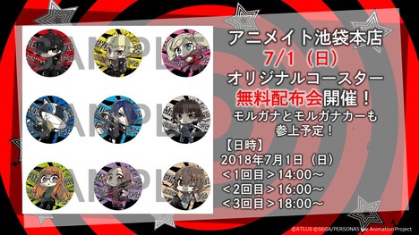 なお本日7月1日には、アニメイト池袋本店にてアニメ「ペルソナ5」のBD&DVD第1巻発売を記念したオリジナルコースターの無料配布会が開催に。会場では第2弾キービジュアルを使用したフライヤーも配布される。