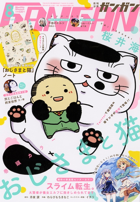 なお7月12日発売の月刊少年ガンガン8月号(スクウェア・エニックス)には、「おじさまと猫」が表紙に登場。イラストがあしらわれたノートブックも付属する。
