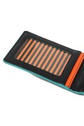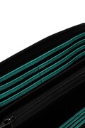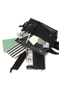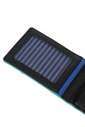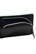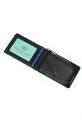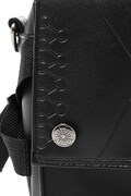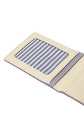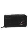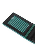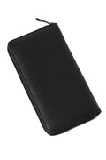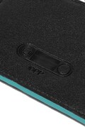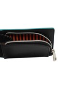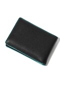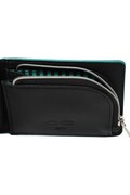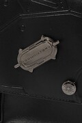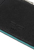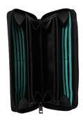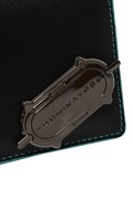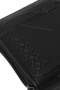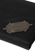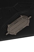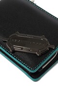 フロントのフラップにドミネーターのデザインを型押ししたボディバッグには、公安局マークを配置。付属のストラップをつければショルダーバッグとしても使えるアイテムに仕上げられた。またブラックの長財布は、フロントにドミネーターのデザインを型押し。ラウンドファスナータイプで、カードが12枚入る収納力も魅力だ。そしてパスケースの内装には、狡噛モデルがブラックとブルーのストライプ、宜野座モデルがブラックとグリーンのストライプ、縢モデルはブラックとオレンジのストライプ、槙島モデルはホワイトとパープルのストライプがデザインされた。