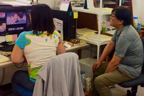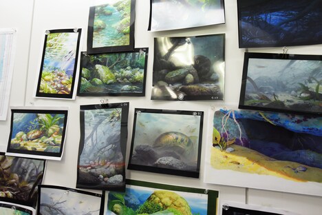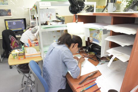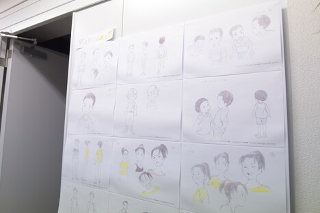長年高畑勲の右腕を務めてきた百瀬の監督作「サムライエッグ」は、西村と百瀬が出会った実在の親子をモデルに制作された人間ドラマ。作画スタッフがたてる鉛筆の音や、動きの確認ために作画用紙をめくる音が響く現場には、主人公・シュンと母親ら登場人物の設定をまとめたイメージボードが置かれていた。色鉛筆の淡い着彩や、太くくっきりとした線で描かれたキャラクターは、企画段階で古田足日と田畑精一による絵本「おしいれのぼうけん」なども参考にしたという。西村は「実話にもとづいて制作する場合、きわめて写実的に描くというアプローチもありますが、それでは実写をつくるのと変わりない。絵本的な風合いで表現したとしたら、実写でやるよりも生々しさが出る可能性がある」と語る。