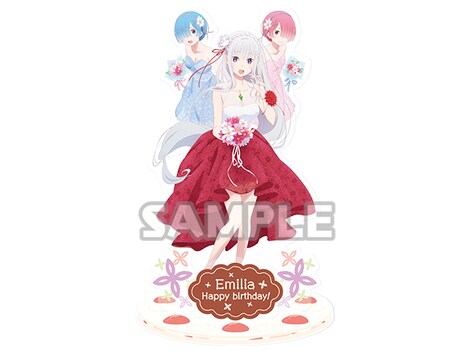 9月14日から27日までは、ヒロイン・エミリアの誕生日にあわせた「Re:ゼロから始めるエミリアの誕生日生活2018 in 渋谷マルイ」を開催。ケーキ風の台座の上にエミリア、レム、ラムが揃った「アクリルジオラマ エミリアバースデー2018ver.」をはじめ、描き下ろしイラストを使用したグッズを販売する。またグッズ4種とエミリアからの手紙がセットになった「エミリアバースデーセット 2018」も用意。なおエミリアの誕生日である9月23日からは、3000円以上のグッズ購入者にエミリア役を務める