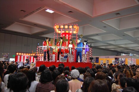 その後ステージでは、来場者から寄せられた質問に梶が答えていくという企画を展開。梶は「今まで異議ありと思ったエピソードは?」という質問に「今回の仕事で京都に来られたので、川床での食事を楽しみにしていたがあいにくの雨天! その雨に異議あり!」と答え、また「友達に『異議あり』と言ったことはありますか?」という質問に対しては「言ったことないので、今度久野美咲ちゃん(綾里春美役)に、出会い頭に唐突に『異議あり!』をしてみます(笑)。結果はまた別の機会に報告しましょう」と答えて場を沸かせる。