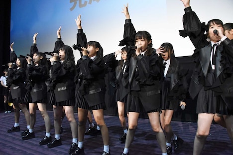 間島が「撮影の裏話あるよ、って人いますか?」と問うと、長月と阿部が元気よく挙手。長月は「学園生活部を撮影の外側でもやっていたんです。ずっと泊まりだったからみんなでスーパーに行ったり、ほかのお仕事でも4人固まっていたりして。楽しかったね!」と笑顔を浮かべる。続けて間島は学園生活部の顧問役を演じたおのに向け、「学園生活部のメンバーで一番気が合うのは?」と質問。おのは「えー、意地悪な質問だなあ」と困りつつも「原作を読んで、私もみんなのことを愛して愛されないと、この映画が成り立たないと思った」と回想し、「ずっと一緒にいて、みんなすごく仲良くしてくれて、歳も10歳ぐらい違うのに友達みたいに接してくれて、本当に私は学園生活部のみんなが大好きになりました」とにこやかに語った。