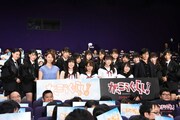 1人ひとり挨拶を終え、ここからは胡桃ら4人が所属する学園生活部のリーダーという役どころの間島が仕切り、撮影の裏話などを紹介していくことに。間島は「私たち初主演ということで、正直に演技はどうでしたか?」と柴田監督に切り込むと、「正直大変でした」と苦笑が返ってくる。しかし「頭から終わりまで順番に撮ってるんですが、それに合わせてみんなどんどん上達して、最後は神がかってます。素晴らしいとしか言いようがないです」と、改めて彼女たちの奮闘を称えた。