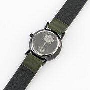 アーチャーモデルの腕時計はモスグリーンとブラックのカラーリングでシックに仕上げられ、盤面には「森とイチイの樹の枝」のイメージをデザイン。またアーチャーのマントをイメージしたアウターは、ゆったりとしたシルエットで、胸元のレースアップも忠実に再現された。