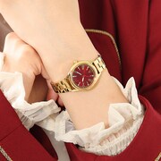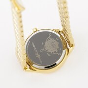 レッドの盤面にゴールドケースが映えるセイバーモデルの腕時計は、薔薇や蔓をあしらった盤面のデザインや「アエストゥス・エストゥス」のシルエットの秒針がポイントに。またアウターは、セイバーが身につけている衣装をイメージしたナポレオンコート風に仕上げられた。