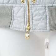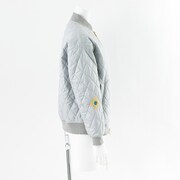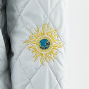 そしてブルーの盤面にシルバーケースが映えるガウェインモデルの腕時計は、太陽のマークや鎧をイメージしたスタッズをデザイン。またショート丈のキルティングブルゾンは、ガウェインの鎧を連想させる仕上がりで、ファスナーチャームや両袖には太陽のデザイン、裏地にはストライプ柄があしらわれた。