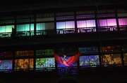 映像は本館北面入口の上に設置されている火の鳥オブジェクトを中心に展開。神話時代、火の鳥が伊予国に降り立つところから物語は進んでいく。映像には手塚が先駆け的に用いていた擬音表現も登場。「シーン」「ドゥゴォォォオーン」「ゆげゆげゆげゆげ」などのオノマトペが、マンガらしいフォントであしらわれている。また火の鳥は時空を飛び、今度は飛鳥時代へ。道後温泉に浸かったとされる聖徳太子の姿と、聖徳太子が来浴した際に見て美しさに感動したという椿の花が映像を彩る。プロジェクションマッピングのタイトルが「MESSAGE -火の鳥、到来-」という通り、最後に火の鳥は道後温泉の素晴らしさを伝えるべく未来に羽ばたいていった。