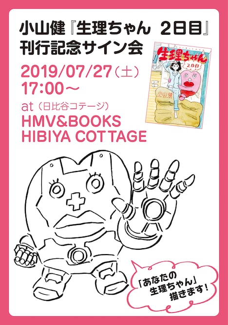なおHMV&BOOKS HIBIYA COTTAGEでは、7月27日に小山のサイン会を開催。同店で「生理ちゃん 2日目」を購入した人が参加対象で、電話での予約・申し込みも受け付ける。詳細はイベントページで確認しよう。