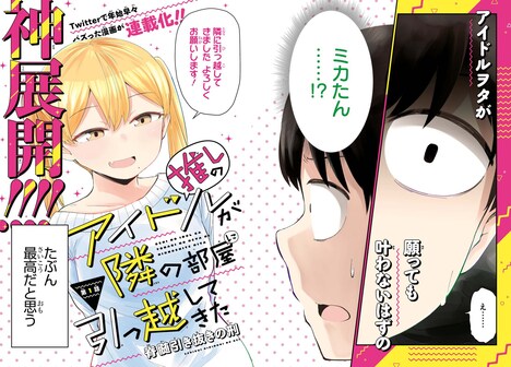 「ドールズフロントライン 人形之歌」は、第3次世界大戦後が勃発した2045年を舞台に、世界の秩序を託された“戦術人形”たちの戦いを描く物語。作画はLingが務める。また「推しのアイドルが隣の部屋に引っ越してきた」は、アイドルオタクのマサキと彼の隣の部屋に引っ越してきた推しのアイドル・ミカのやり取りを描くコメディ。著者が自身のSNSなどで発表し話題を集めた作品だ。