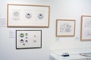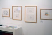 企画展はアニメ「ちびまる子」ちゃんの歩みを年代順に振り返っていくような構成に。アニメの設定画や原画といった資料に加え、さくら直筆のイラストやプロットも多く展示されている。「さくらももこさんの想い」コーナーには自宅で飾った七夕の短冊、「友蔵心の俳句」ならぬ「ももこ心の俳句」、ファンや友人のマンガ家からの大切な手紙を入れたボックス、捨てられずに小さくなった色鉛筆などを展示。手作りの薬箱やトイレのプレート、ワインのラベルといった多くのアイテムにさくらのイラストがデザインされた。また最後のフォトコーナーでは、劇中でおなじみのみつやの前でまる子と一緒に写真を撮ることができる。