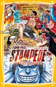 「ONE PIECE STAMPEDE」では海賊の、海賊による、海賊のための世界一の祭典・海賊万博で行われる「海賊王(ロジャー)の遺した宝探し」にまつわるエピソードを展開。海賊万博の主催者であるブエナ・フェスタや、触れたものを幻影として出現させる力を持つビジョビジョの実の能力者・歌姫アン、元ロジャー海賊団メンバーのダグラス・バレットなどがゲストキャラクターとして登場する。ノベライズ小説はJUMP j BOOKS版と、児童向けの集英社みらい文庫版の2種類が用意されており、JUMP j BOOKS版は浜崎達也、集英社みらい文庫版は志田もちたろうが執筆した。