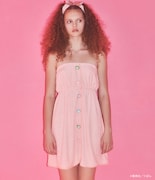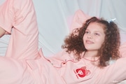 ラインナップされたのはパジャマ、ブラセット、ポーチなど5点。パジャマはピンクで統一され、左胸にはポイントとしてりぼんちゃんがあしらわれた。ブラセットはドット柄のバンドゥタイプ。ドットの一部がりぼんちゃんになっている。ポーチはりぼんちゃんの顔が全面にデザインされた。巾着タイプで、ランジェリーやコスメを入れるのに適したサイズに仕上がっている。