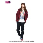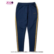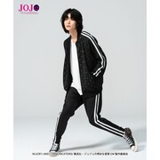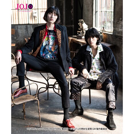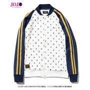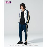 ブチャラティのスーツ柄が散りばめられた「コラボレーションジャージ」は、水彩とスプレータッチを組み合わせたデザインで、サイドのラインには「Arrivederci(さよならだ)」の文字が。ジャージとセットで着用できるサルエルタイプの「コラボレーションパンツ」も用意された。また四分割されたデザインが印象的な「コラボレーションリメイクTシャツ」は、ジョルノとブチャラティの結束が表現されている。