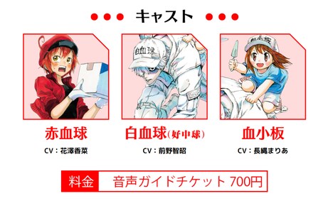 また原画展に向けた清水からのメッセージとイラスト、TVアニメで赤血球役を演じた花澤香菜、白血球役の前野智昭、血小板役の長縄まりあが担当する音声ガイド、展覧会会場と松屋銀座店内をめぐるスタンプラリー、細胞たちと一緒に傷口をふさぐ「血栓フォトスポット」など、作品世界をより楽しめる企画が目白押しだ。チケットの前売券はローソンチケットにて10月8日まで販売中。