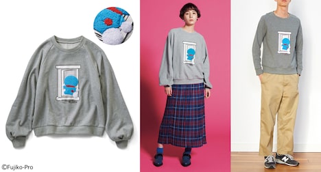 アパレルアイテムはフェリシモのアパレルライン・シロップに登場。ドラえもんの姿をフロントに立体的なパイル刺繍で施した「どこでもドア パイル刺しゅうスウェットトップス」、恋に悩むドラえもんの姿をちりばめた「好きでたまらニャい プリントスカート」、のび太とドラえもんが暮らす町並みと上空を飛ぶ2人の姿を編み込んだ「タケコプターで飛ぶ ドリーミーカーディガン」、シンプルな白いTシャツに明るいカラーが映える「いろんな表情が楽しい プリントTシャツ」、サテンのキルティング生地で大人っぽく仕上げた「アンキパンポーチ」など個性的なアイテムが揃った。