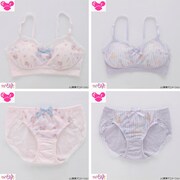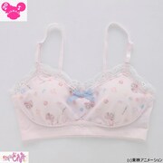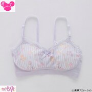 ラインナップされたのは、どれみのフェイスアップがデザインされたピンクと、作中アイテムの玩具をモチーフにしたデザインのパープル、2色のルームウェアとおやすみ用ブラシリーズ。ルームウェアのトップスは前後どちらでも着ることができる2WAY仕様で、別売りのパンツ付きスカートと合わせれば部屋着としても使用できる。またおやすみ用ブラには、合わせて着られるショーツがセットに。さらにおやすみ用ブラシリーズと同じ柄の巾着バッグポーチも揃えられた。