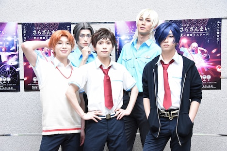 本作でキャラクターたちが披露するさまざまなポーズは再現が難しかったとのことで、木津は「もう手もつりそうだし、足もプルプルしてる(笑)」と明かし、設楽も「どうしたらあんな形になれるのか……」と漏らす。高本が「ポーズも各々が研究して、いろいろみんなで改良しながらやってきたので、原作に近付いているんじゃないかと思います」と補足すると、ほかの4人が「ありがとうございます!」と頭を下げてみせるなど、和気藹々とした空気感がうかがえた。中村は映像を交えた演出についても触れ、「映像と合わさって、ものすごく説得力が増しました。“2.5次元とはこういうもの”というか。すごく助けていただいています」と笑顔を見せた。
