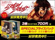 「SPECIALプライスパック」は、「ケンガンアシュラ」の1巻から3巻、4巻から6巻の3冊セットが、それぞれ税込770円で販売されるもの。「ケンガンアシュラ」は現在、アニメがNetflixにて配信中。2020年1月10日からはTOKYO MXほかでTV放送も開始するので、その前にお得な価格で「ケンガンアシュラ」のマンガを楽しんでみては。また特設サイトもオープンし、「拳願絶命トーナメント予選」「全出場者決定」「一回戦 第一仕合」の3つのエピソード、100ページ超を2020年6月末まで読むことができる。