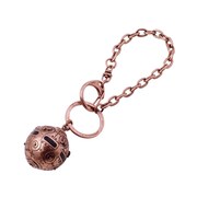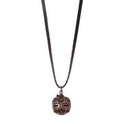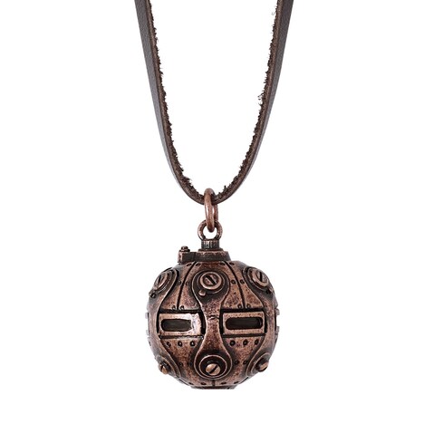 ネックレスとバッグチャームは、アンジェが使用する秘密兵器・Cボールをモチーフにしたもの。どちらも舞台である19世紀末のロンドンをイメージし、古美加工によりアンティーク調に仕上げられた。またネックレスにはブラウンの本革紐が使用されている。